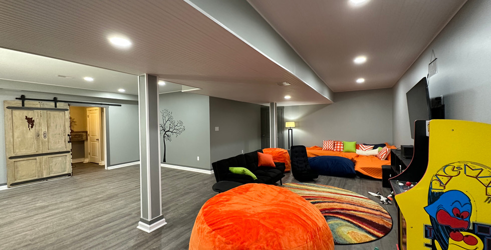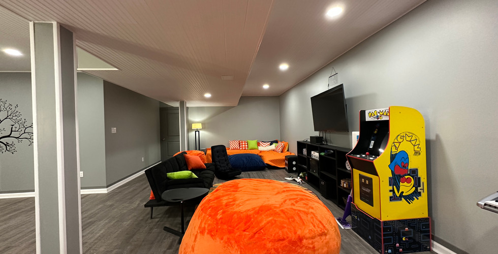 Since being built, this beautiful home in Ehrman Farms (Cranberry Twp.) never experienced a completely finished basement. After purchasing the home, the owners made several improvements to the space, adding flooring, baseboard, etc... but always desired to see it fully completed. Instead of a more common drywall, my customers decided to go with a staggered bead-board finish. The Handy Home Pro also constructed bulkheads and upgraded the lighting from standard, builder-grade, dim lighting to LED wafer lighting with 3 separate (dimmable) control zones. After painting and finishing everything off with white trim, the long-awaited finished basement is... well... finished!